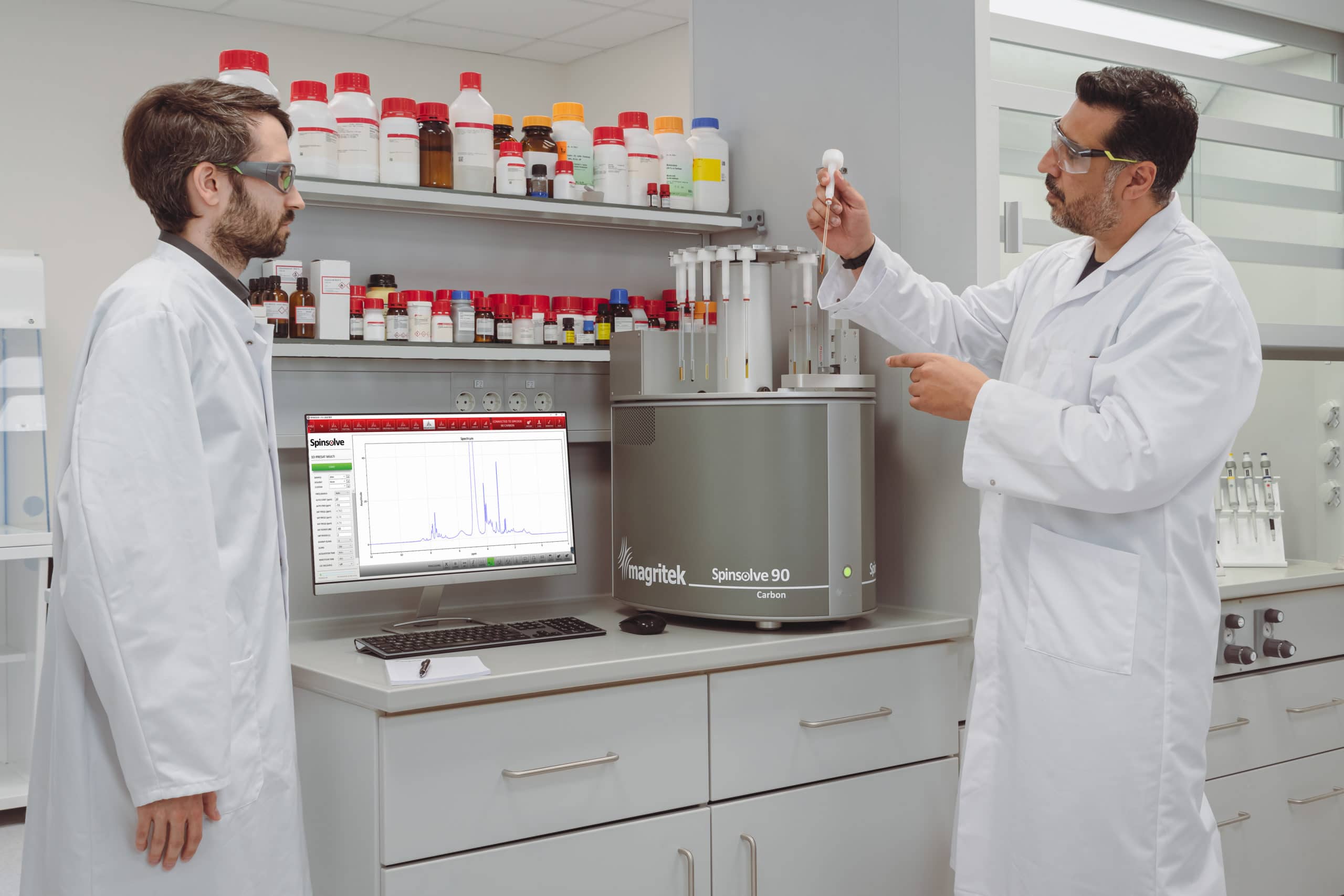 The Spinsolve high-resolution benchtop NMR spectrometer can be installed directly in the fume hood of a chemistry lab to monitor the progress of chemical reactions on-line.