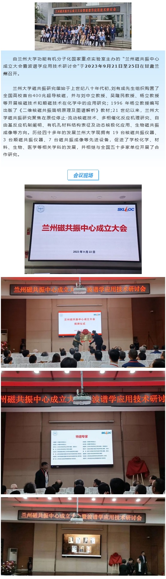 由蘭州大學功能有機分子化國家重點實驗室主辦的 “蘭州磁共振中心成立大會暨波譜學應用技術研討會”于2023年9月21日至25日在甘肅蘭州召開。