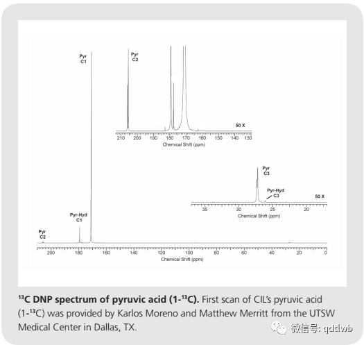 DNP是由未配對電子的極化轉(zhuǎn)移到研究中的原子核而促進(jìn)的溶解。DNP方法要求樣品在強(qiáng)磁場(如3t)中微波輻照時(shí)保持低溫(如<4k)輻照后,樣品用熱加壓溶劑迅速溶解,并轉(zhuǎn)移到核磁共振管或注射注射器中,以便立即進(jìn)行核磁共振或核磁共振數(shù)據(jù)采集。在微波輻射期間,樣品中必須存在濃度為mM的自由基摻雜劑(例如,“OX63”和“Finland”等三苯基自由基),以便為分子間轉(zhuǎn)移提供所需的核極化。一般來說,可接受的極化水平是通過幾十分鐘到幾個(gè)小時(shí)的輻照時(shí)間來實(shí)現(xiàn)的。