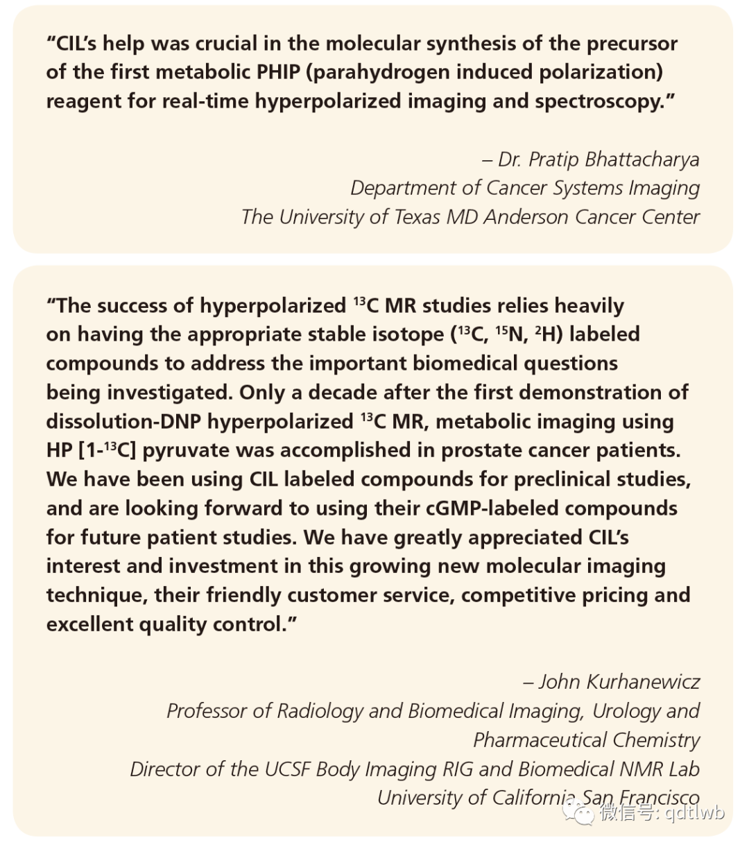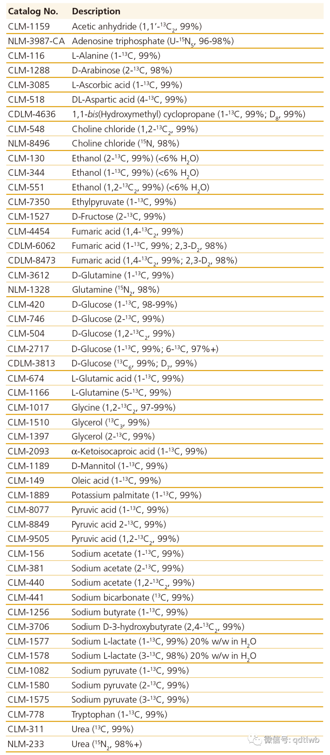 CIL提供以下超極化富集底物,用于代謝研究以及PHIP和DNP實(shí)驗(yàn)。由于消除了13C-1H偶極弛豫,鄰近13C核的氘的存在可能有助于延長T1時(shí)間。研究顯示,其中一個(gè)或多個(gè)化合物超極化在同一個(gè)樣本,從而同時(shí)探測多種途徑。
