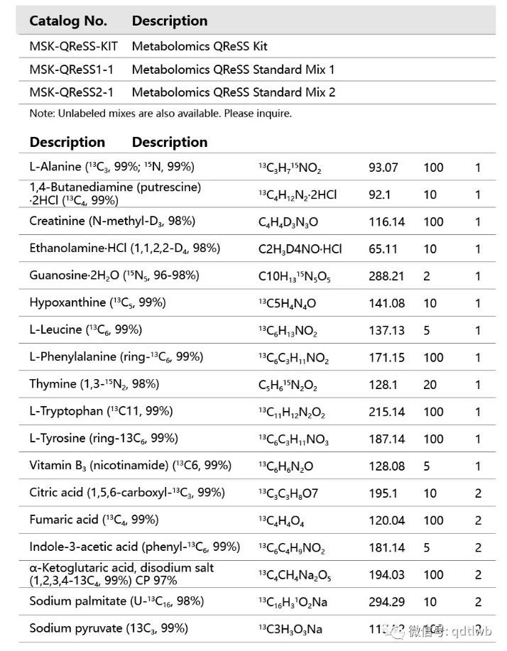 QReSS試劑盒在質譜法代謝組學中的應用:
