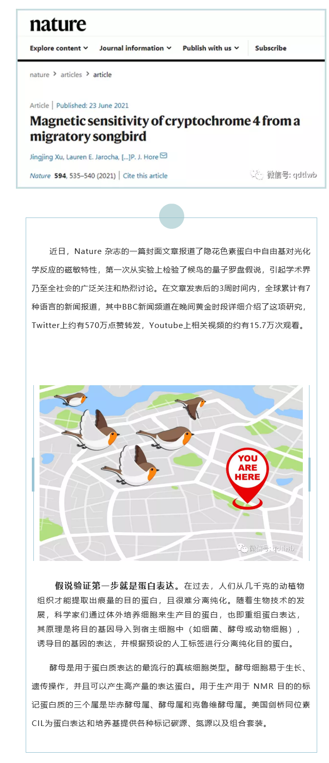 近日,Nature 雜志的一篇封面文章報道了隱花色素蛋白中自由基對光化學反應的磁敏特性,第一次從實驗上檢驗了候鳥的量子羅盤假說,引起學術界乃至全社會的廣泛關注和熱烈討論。在文章發表后的3周時間內,全球累計有7種語言的新聞報道,其中BBC新聞頻道在晚間黃金時段詳細介紹了這項研究,Twitter上約有570萬點贊轉發,Youtube上相關視頻的約有15.7萬次觀看