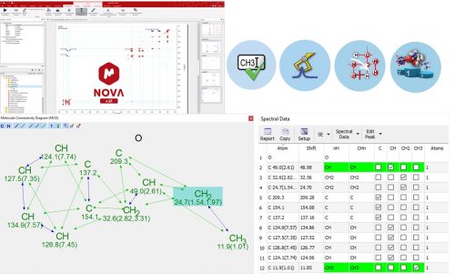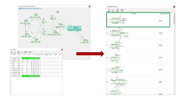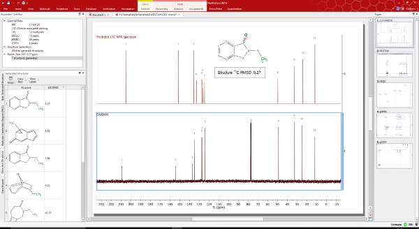 通過NMR闡明結構的簡單而可靠的方法。 實際上,Mnova Structure Elucidation是一個計算機輔助結構解析(CASE)系統,該系統將通過一個簡單易用的工作流將您從核磁共振數據帶到結構。 這一功能插件結合了一維和二維核磁共振峰值選取策略(GSD去卷積、filtering、smoothing)的新進展、約束生成和處理的新方法以及基于約束的結構生成的新方法。