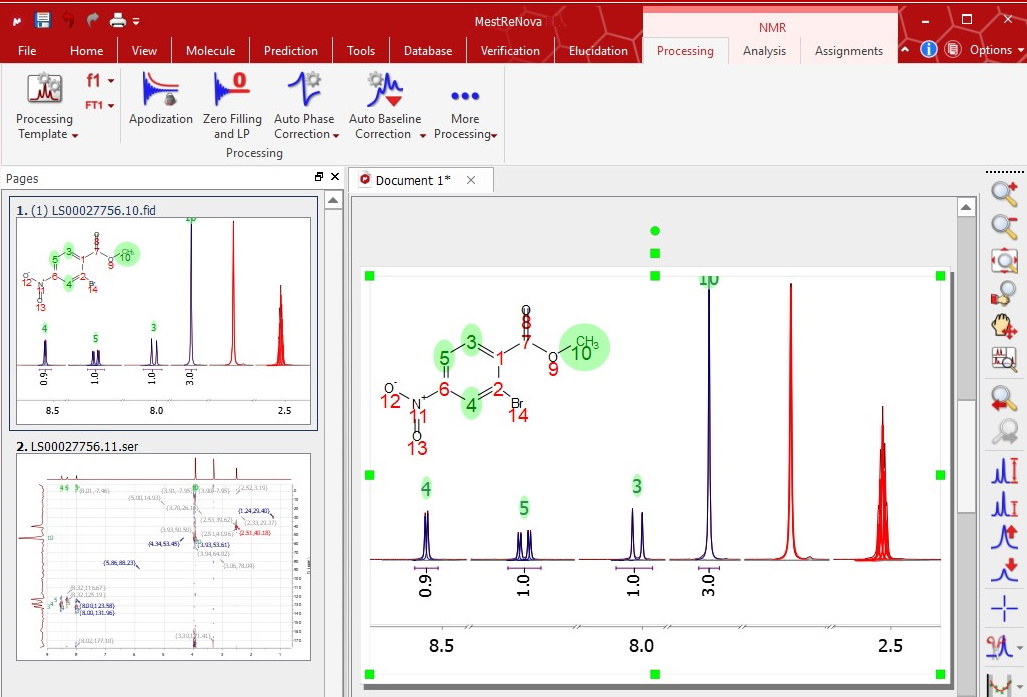 您只需從 NMR 儀器拖放一維和二維數據,Mnova 即可自動處理譜圖,并為分析做好準備。