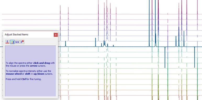 化學家想要同時處理多個譜圖的原因有很多,而Mnova NMR使這一過程變得非常簡單。無論您是在為給定樣品處理一組1D和2D NMR譜圖,還是想要比較幾個1D(可能是實驗性的或預測的,或者在不同濃度或不同樣品中獲得的1D)甚至幾個2D(例如,通過比較HSQC和HMBC來確定結構)譜圖,Mnova NMR允許您在同一文檔中可視化多個譜圖并一起進行分析。 在Mnova中只需單擊一下即可將一系列譜圖組合在一起,并以不同的方式(stacked, superimposed, etc.)顯示。