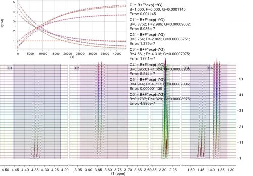 Mnova結合了“數據分析”功能,用于分析一系列1D NMR實驗。它具有處理多個系列的能力,例如,可以分析同一實驗中多個共振的衰減,或滴定期間的一系列峰值偏移。