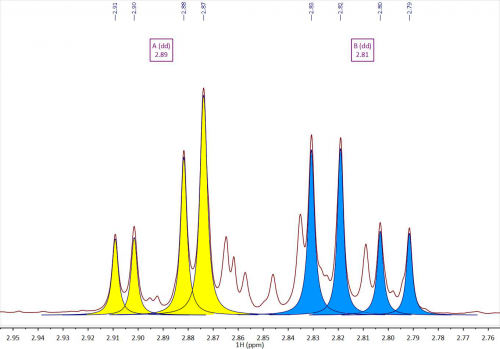 式中,C是化學物質的濃度,AI是該物質多重峰的絕對積分,NN是該多重態的核素數(通常為Hs)。由此我們得出: