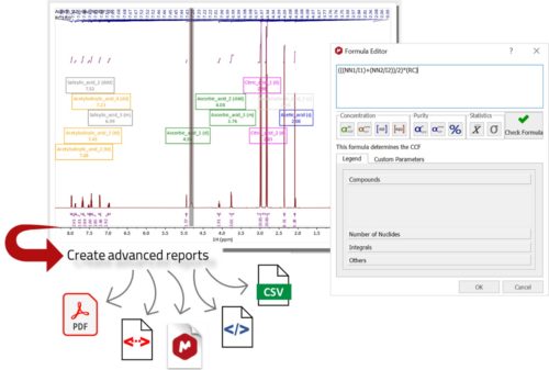 可以導出多種格式的報告:PDF、MNOVA、HTML、XML、CSV等。