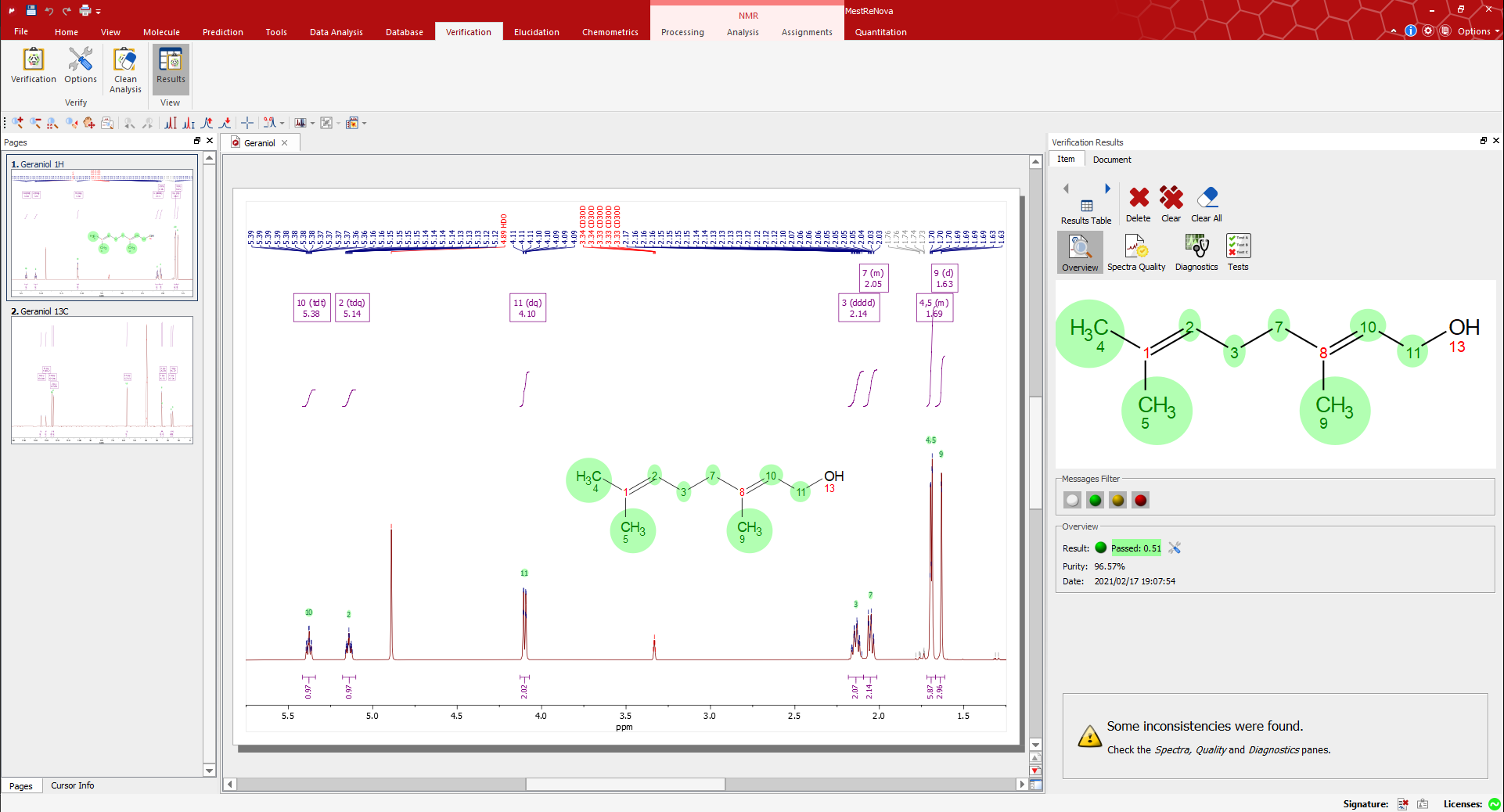 然后系統會對提出的結構進行排序,并快速告訴您哪一個更適合實驗數據。如果對結果不滿意,可以輕松地在Mnova中對數據進行重新處理。